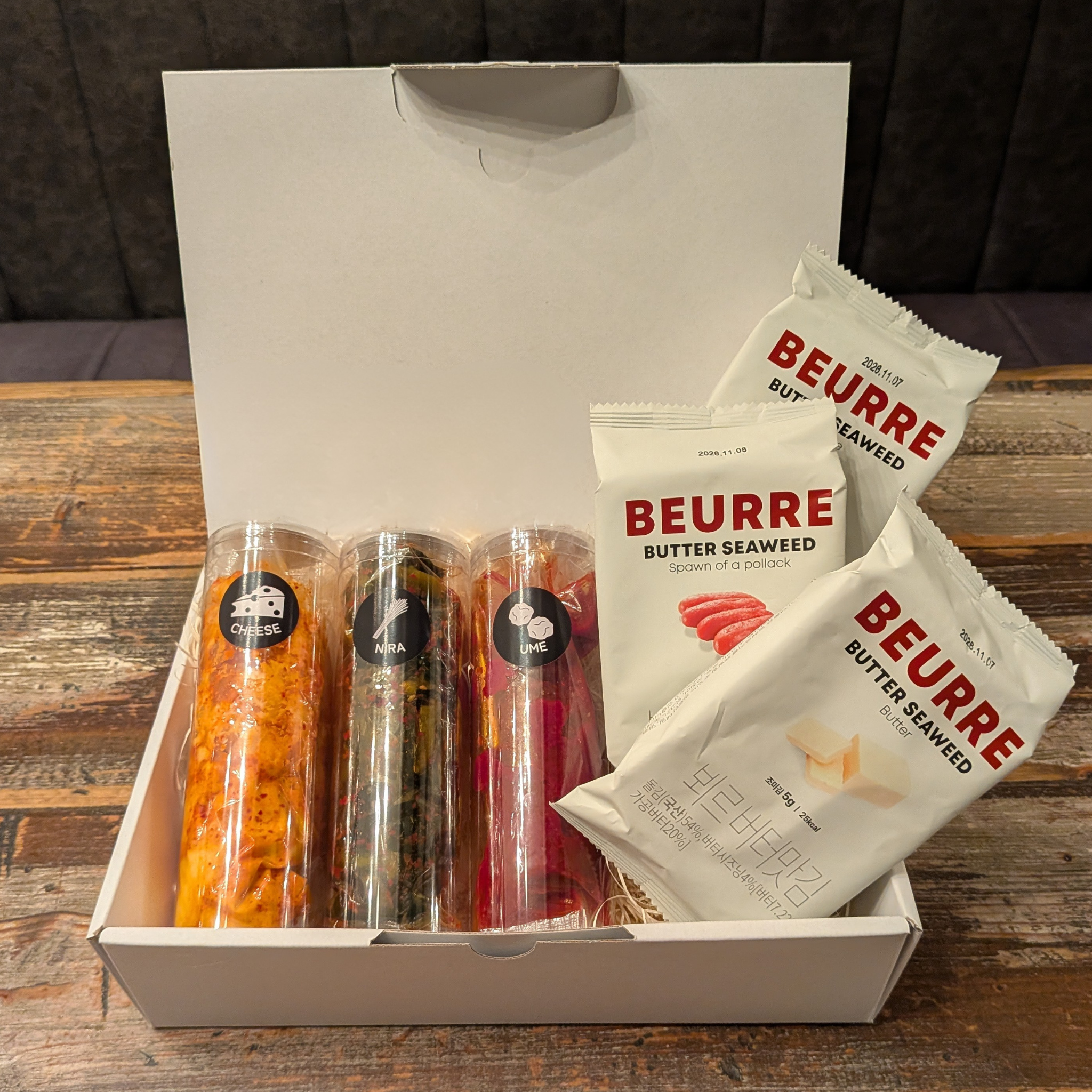 日本初上陸!バターの風味を生かした韓国海苔『BEURRE』の3種類を、焼肉KINTANが日本国内で初めて販売!【ブーランジュリーブールの代表的なバターをベースにした、3種のフレーバー】BEURRE海苔は3種のフレーバーをご用意しております。焼肉と一緒に、おつまみとして、お子様のおやつとして、様々なシーンで気軽にお楽しみいただける、新しい韓国海苔です。